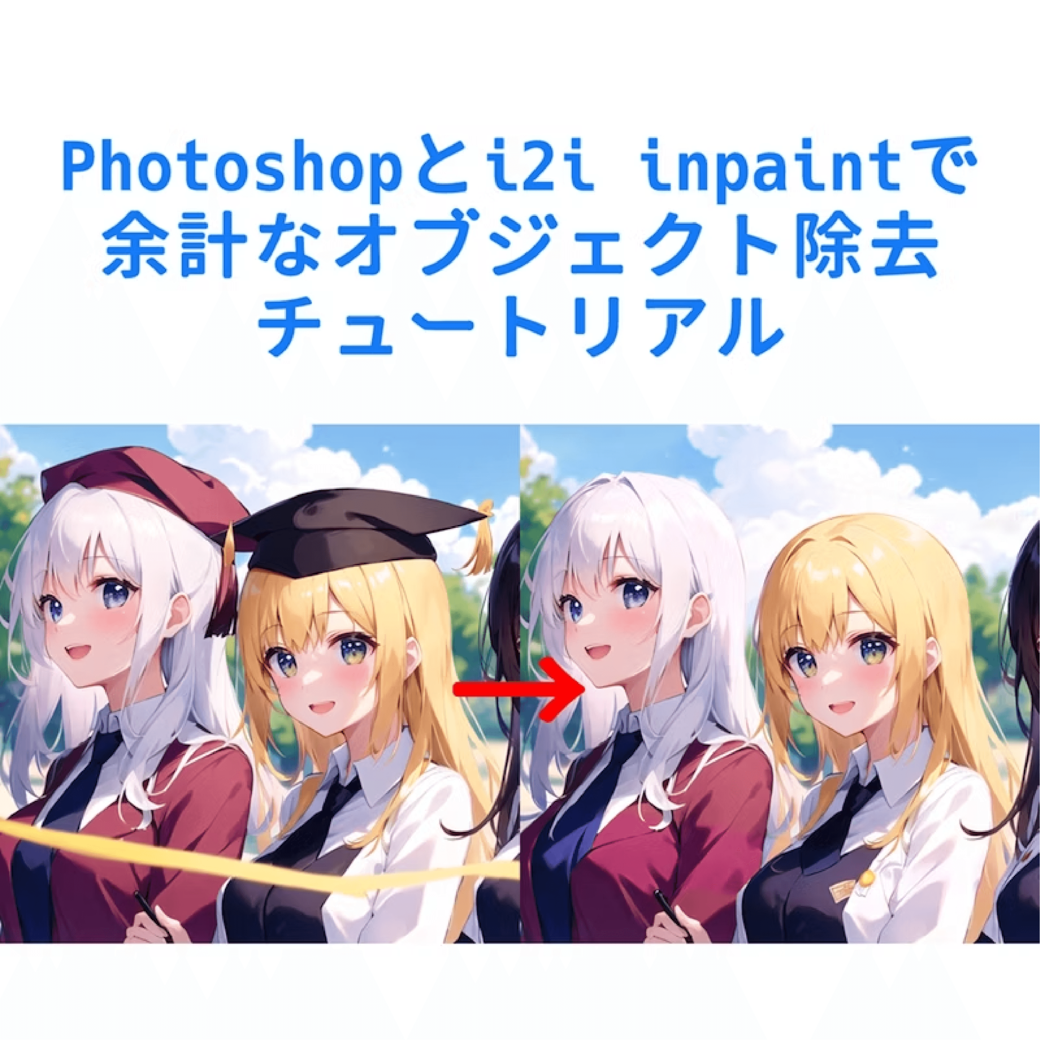 投稿した作例(9枚目)の場合、inpaintを1回行っただけで充分な出来となりました。