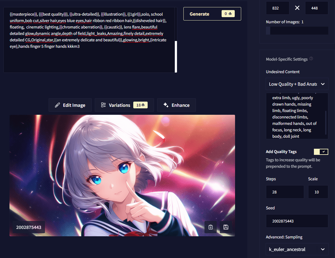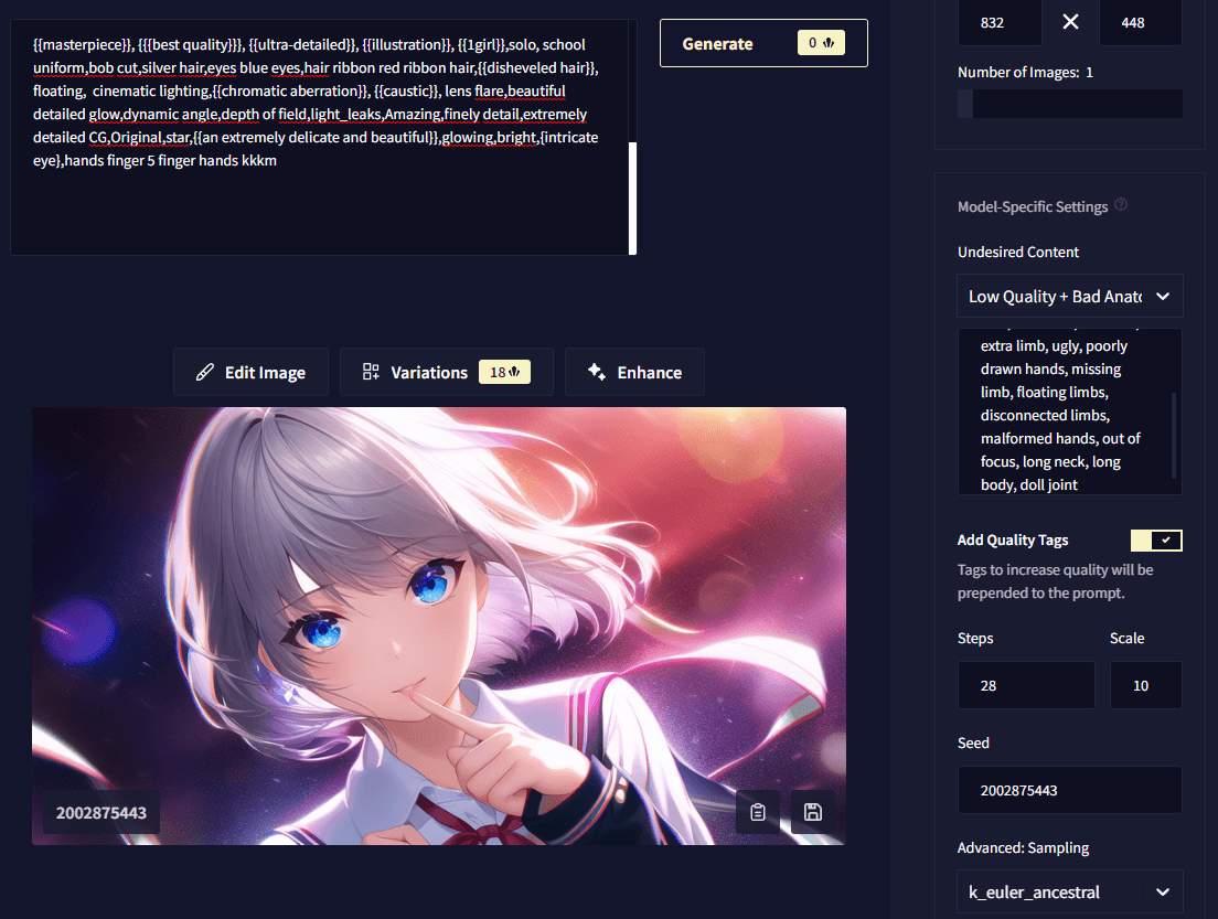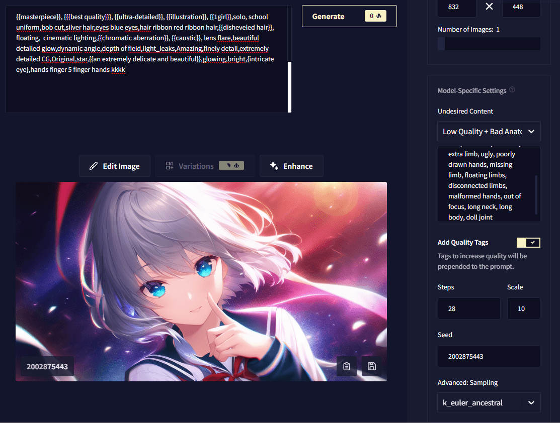 今回は、シード値を固定し、修正タグを編集することで手指の描画を修正する手法