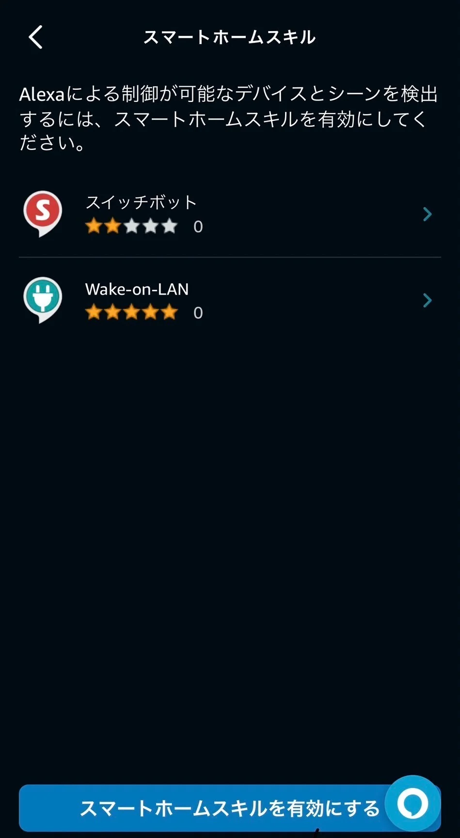 アレクサのスマートホームスキルからスキルを有効化して、