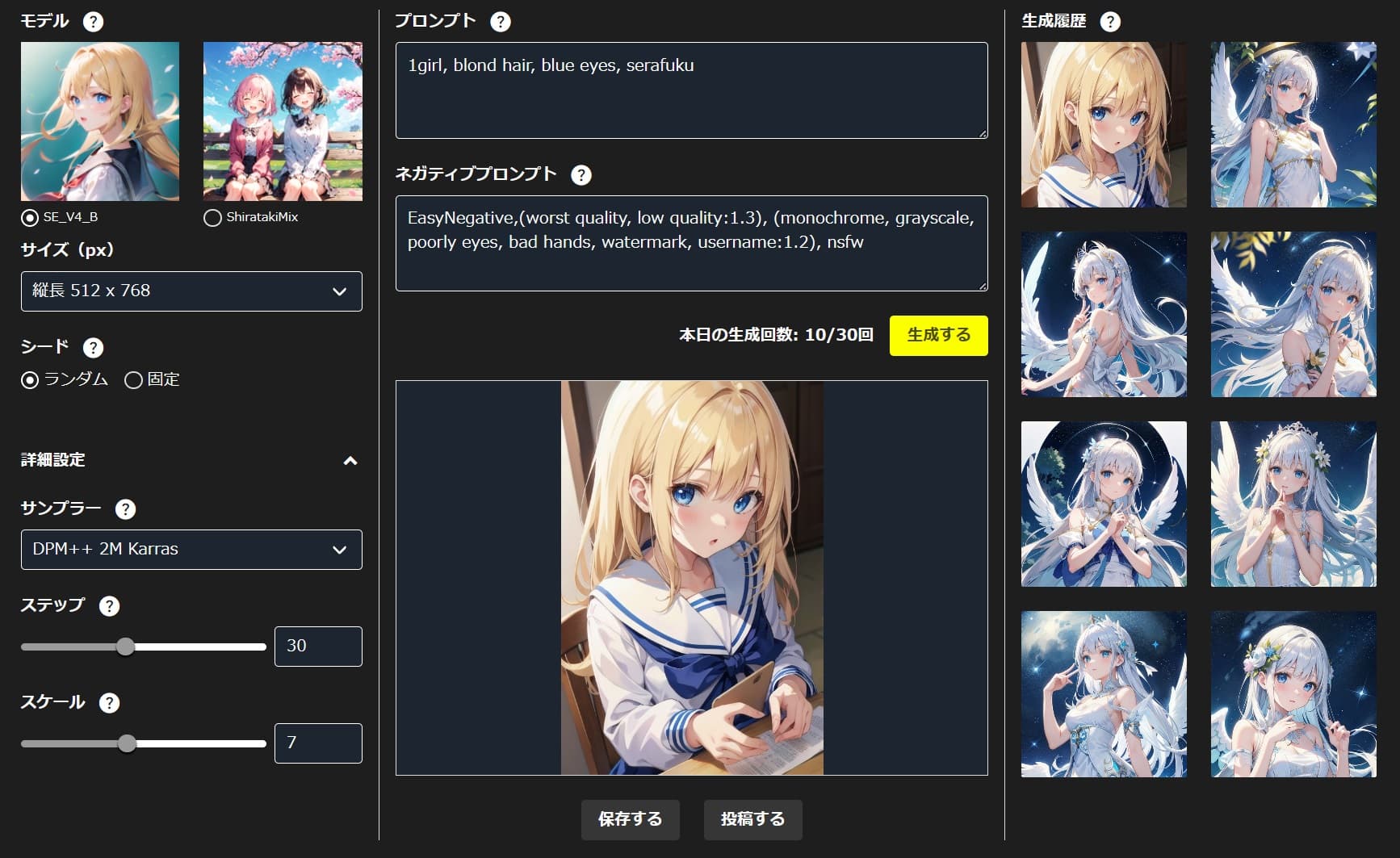 現在の1日の生成可能回数は30回ですが0時で回数はリセットされます。