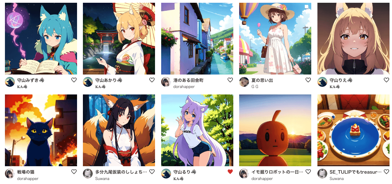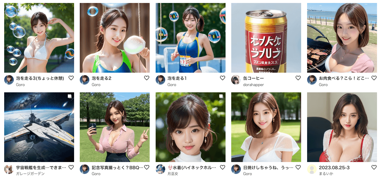 →生成した画像を新着順で80枚表示します。画像をクリックすると詳細情報を閲覧できます。