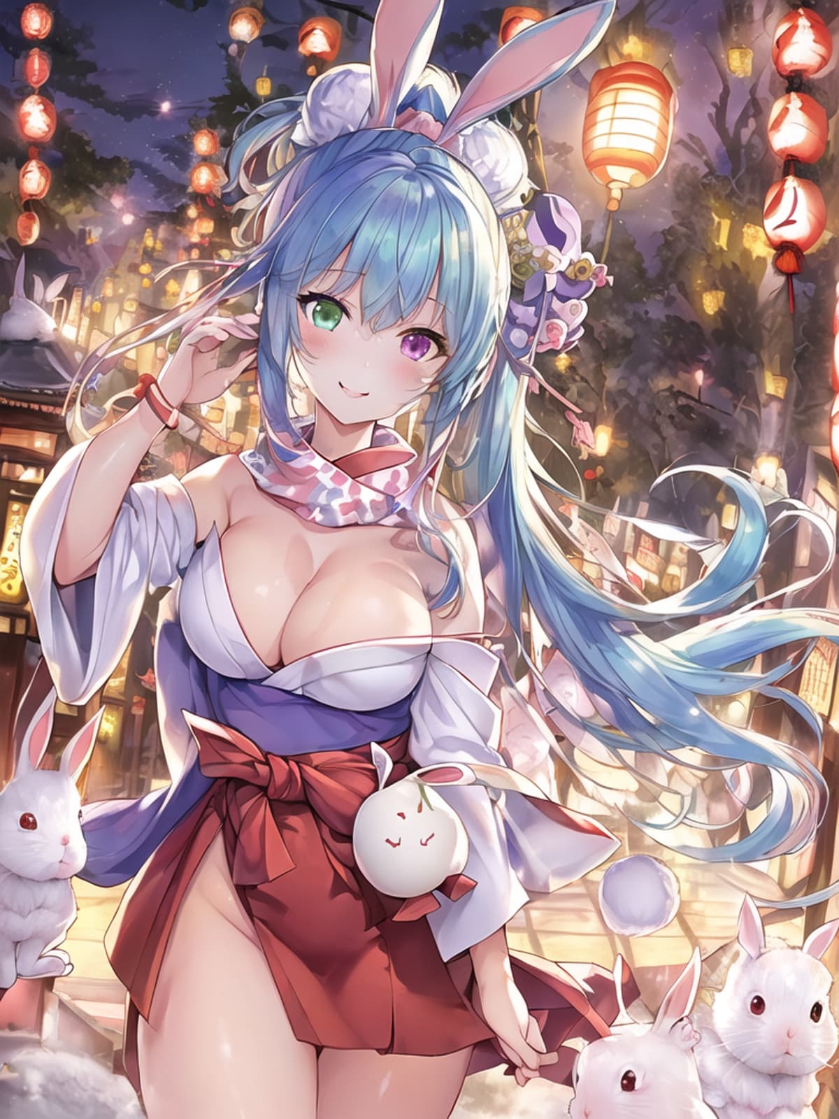 5位 うさぎ達と和服美人