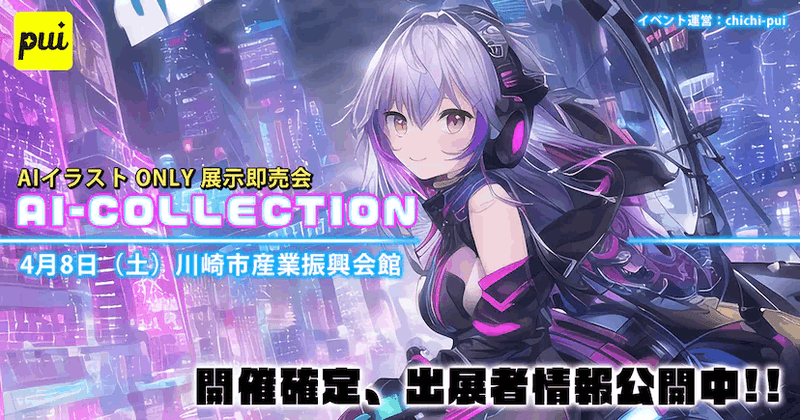 4月8日の土曜日より、AIイラストのみを扱った即売会が川崎市の産業復興会館で開催されます!