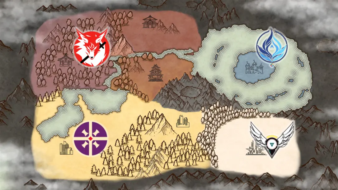 北東の「スワガ藩」は呪術や式神を駆使する陰陽術師たちの藩、南東の「タケクラ藩」は城壁をも斬り裂く一騎当千の武士たちの藩、西の「シオン藩」は妖術や隠密行動を得意とする半妖や獣人といった亜人たちの藩である。