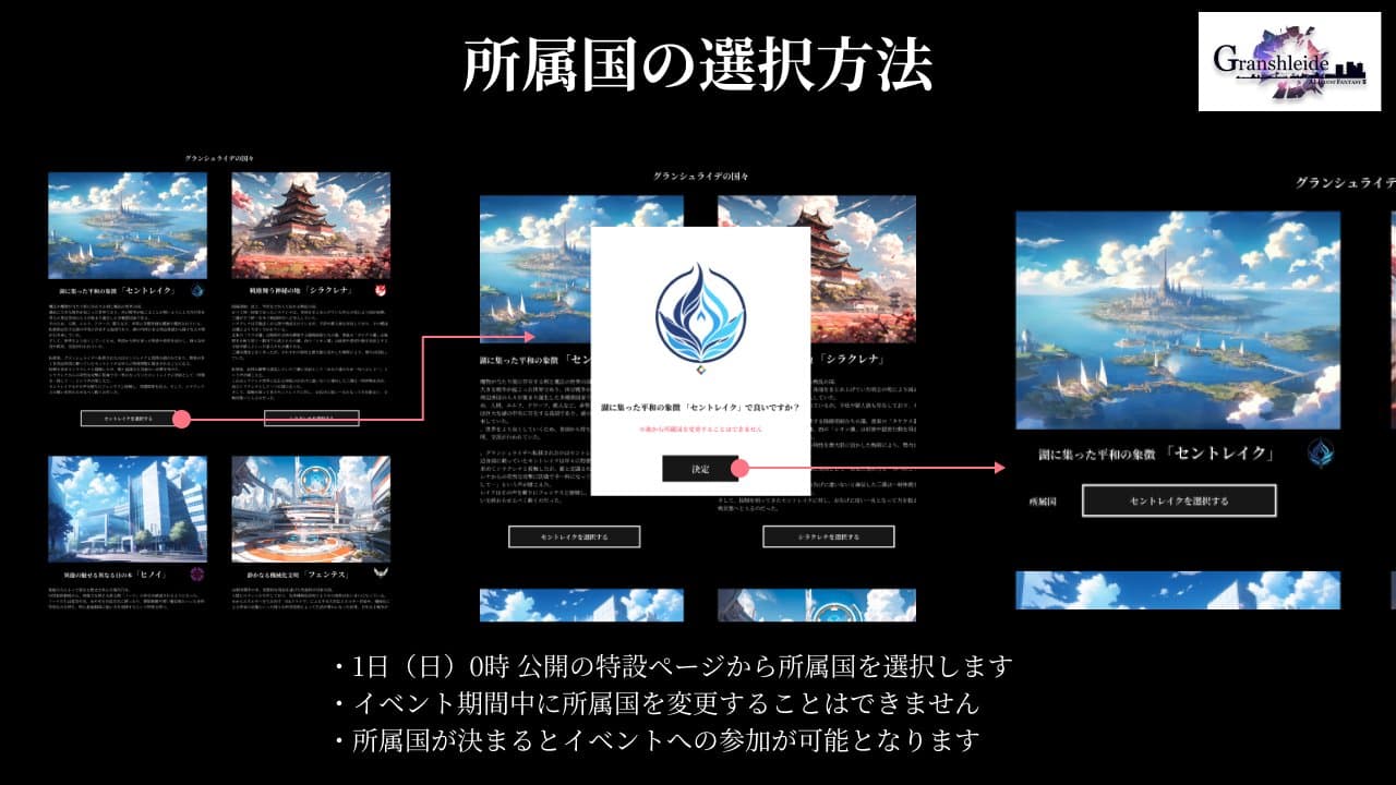 「グランシュライデ」ではユーザーが4つの国から1カ国を選び、国に沿った「キャラクター」「生物」「道具」「風景」「世界観の設定」などをAIイラストを使って自由に生成し各国がポイントを稼ぎながら、その合計ポイント(戦力)を競い、最も合計戦力が高かった国が勝利となります!