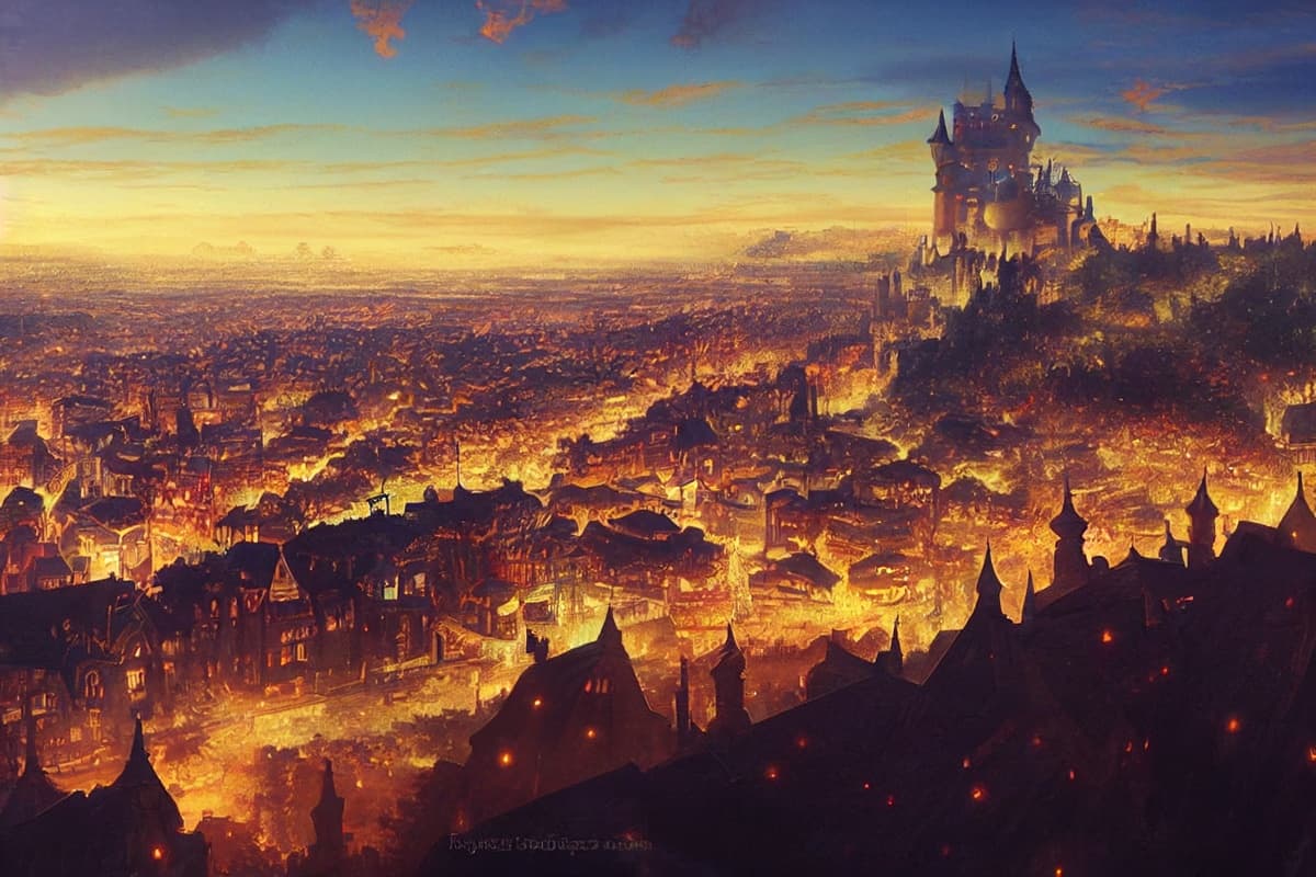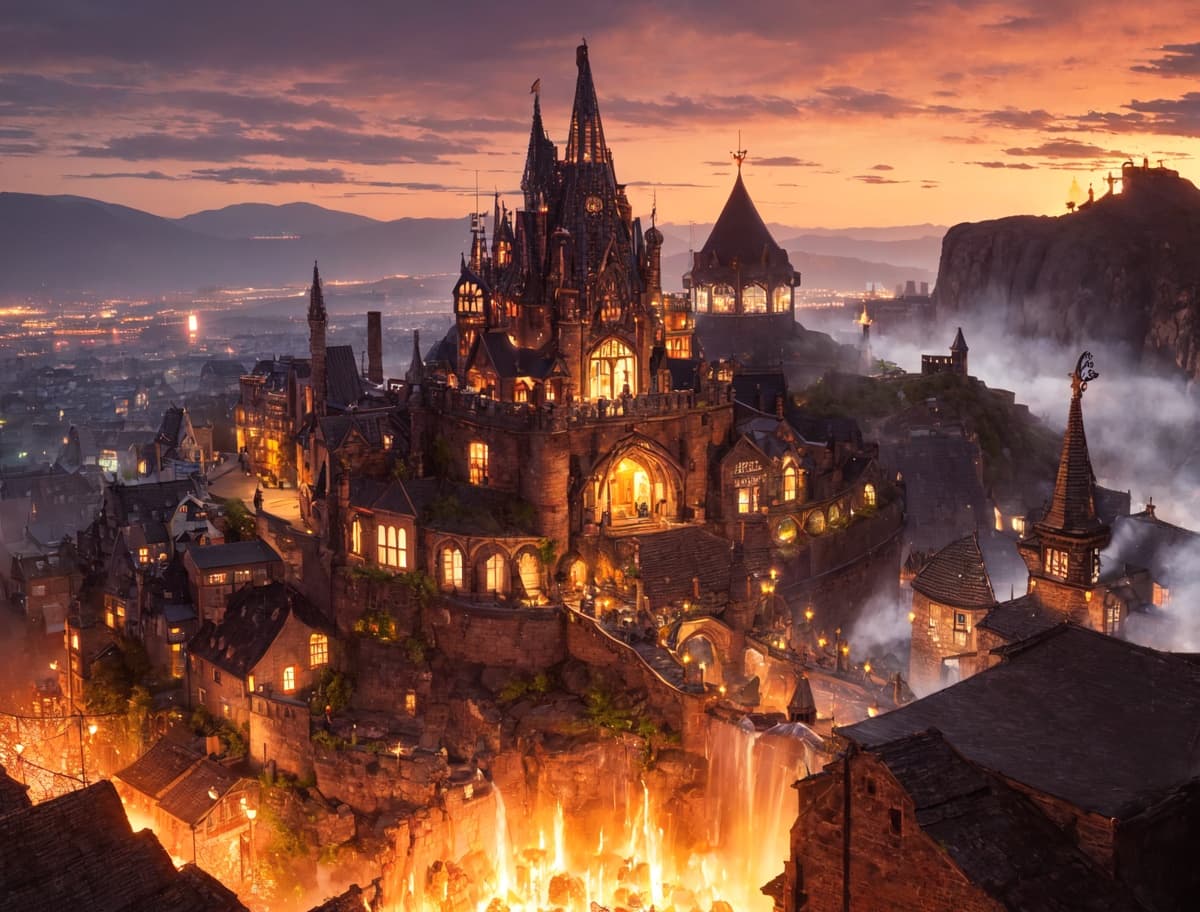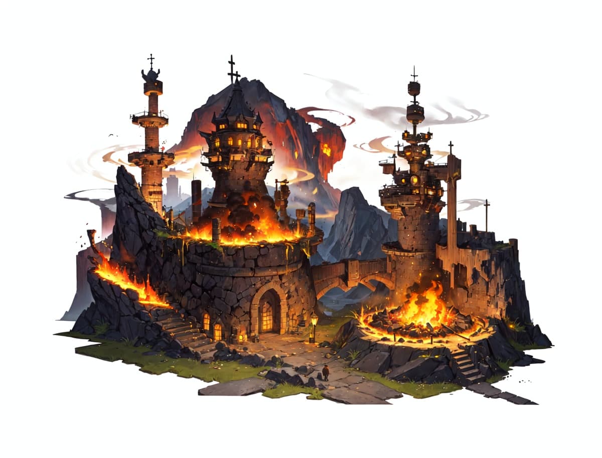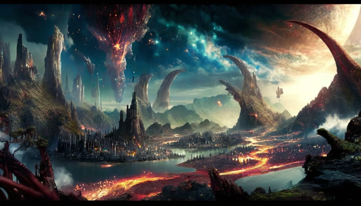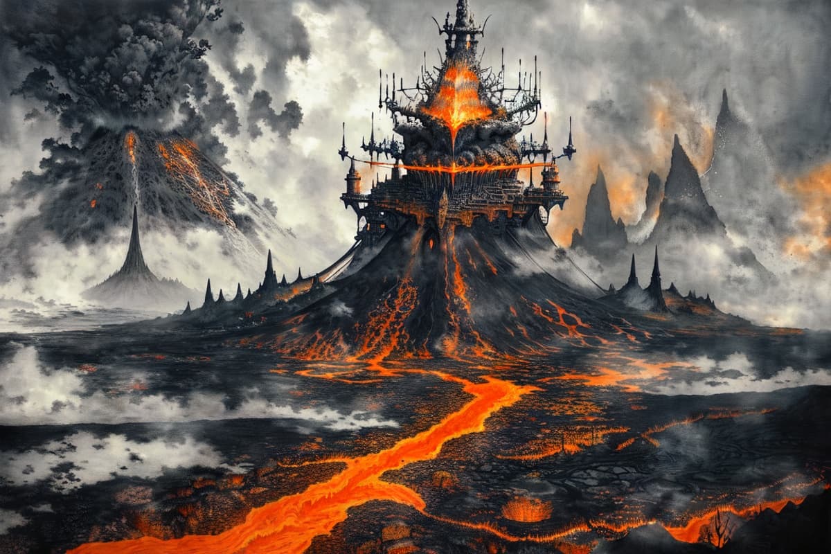 In the Land of Fire and Iron, the city of Granzen was nestled in the middle of an active volcano with lava rivers flowing through its streets. The landscape was both breathtaking and treacherous, with towering cliffs of volcanic rock and bubbling lava pits that could erupt at any moment. The people of Granzen had learned to live with the constant danger, building their homes and structures with materials that could withstand the intense heat and lava flows. Despite the dangers, the city was a hub of activity, with skilled blacksmiths and craftsmen creating beautiful works of art from the abundant minerals and ore found in the surrounding landscape. Visitors came from far and wide to see the city and its unique beauty, marveling at the resilience and ingenuity of the people who called it home. (by ChatGPT AI).