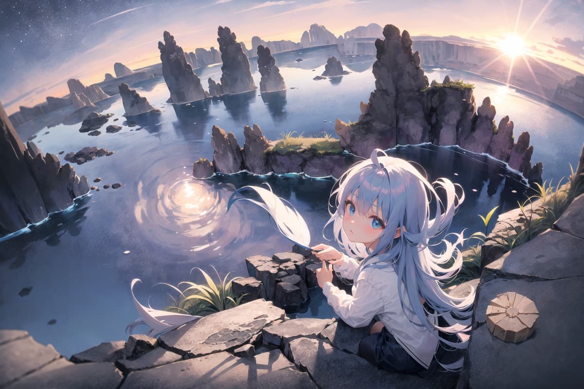 「グランゼンの休火山である火口湖を定期観測するアオイは、美しい景色を眺めながら淡々と仕事をこなしていた。その日もいつも通り、火口湖の水位や気温などを測定し、記録に残していく。