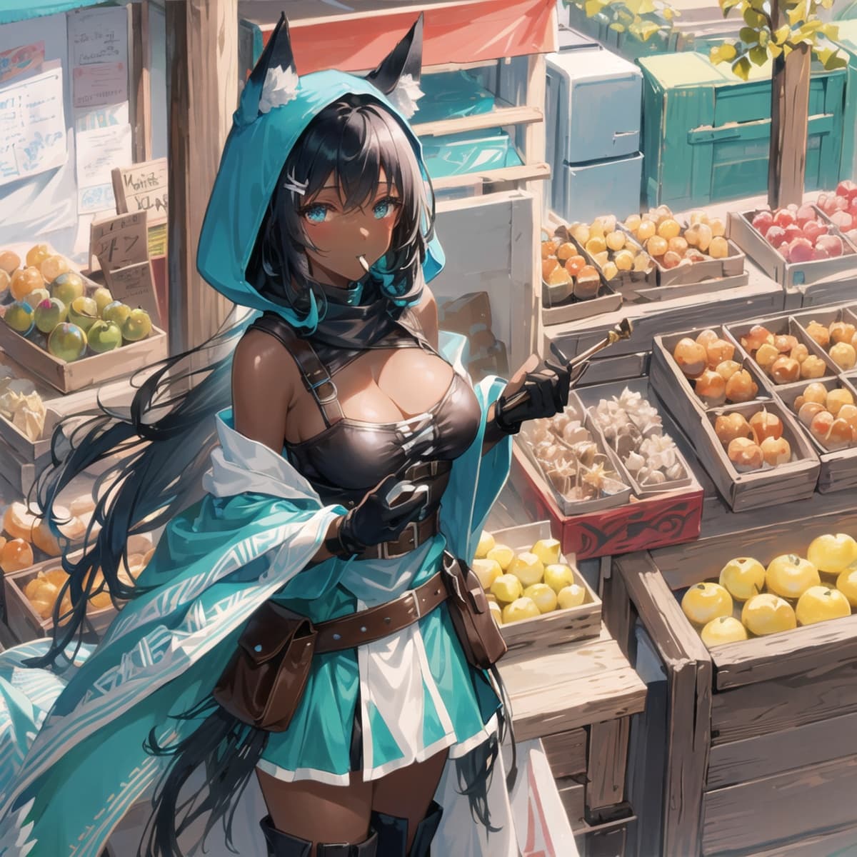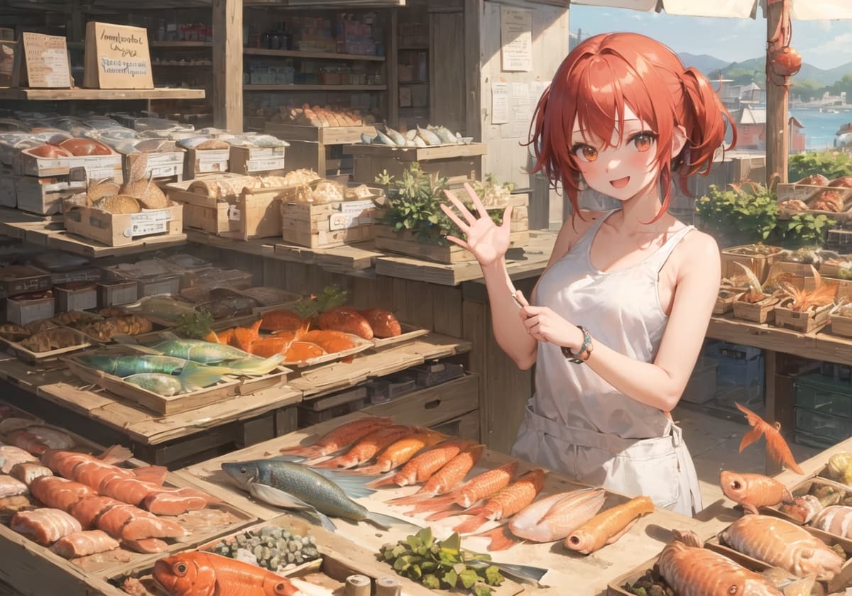 ウェスティリア沿岸部にある市場で魚を売る看板娘。