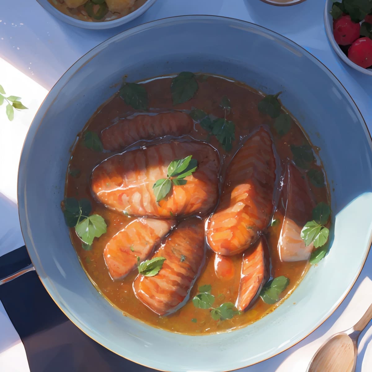 ウェスティリアでは一般的に食される赤身魚を、香辛料や野菜等と共に煮込んで作られる。よく火の通った魚肉は柔らかく、濃いめに味付けされたスープを吸って濃厚な味わい。