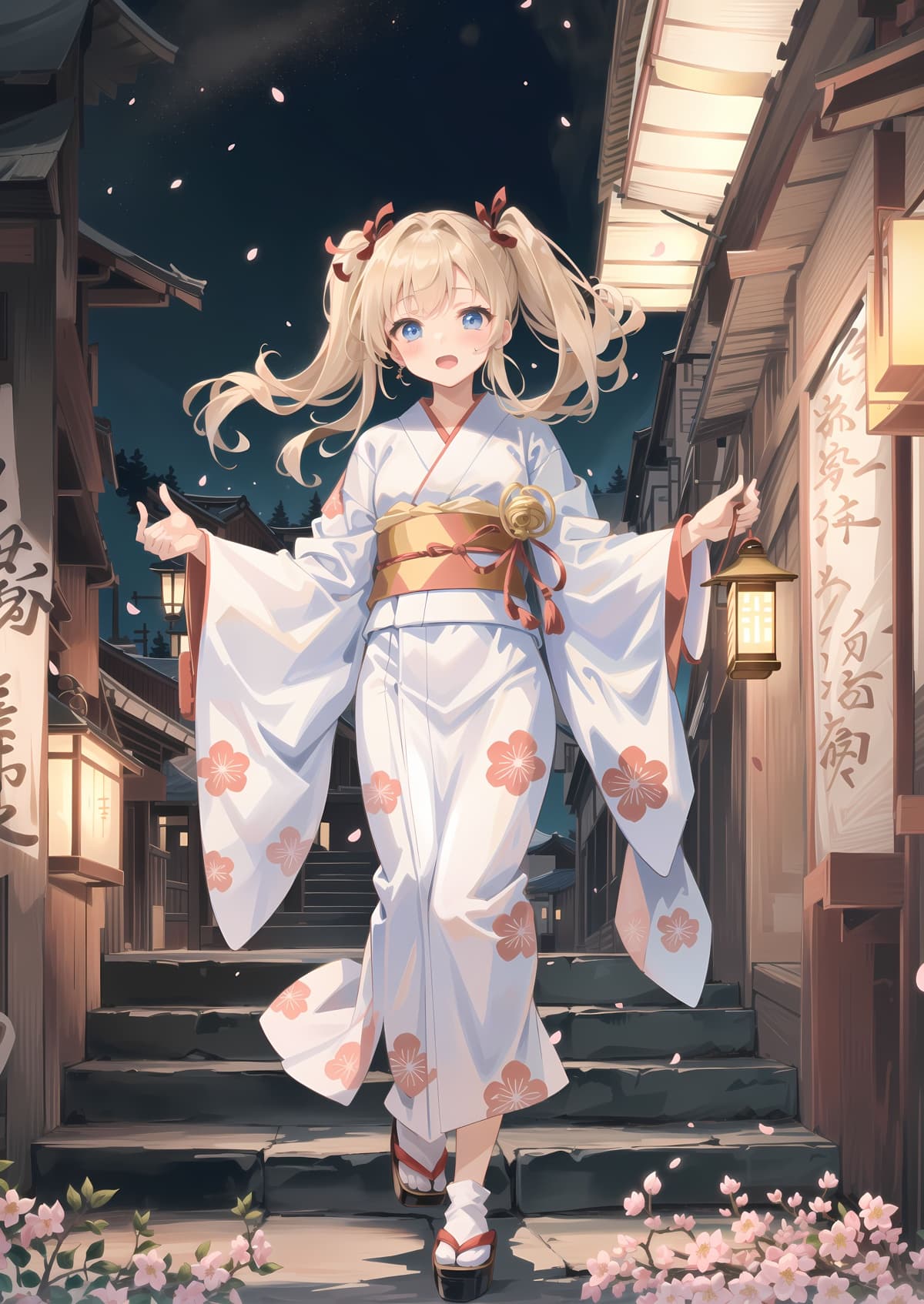 "藍染の夜空に浮かぶ風鈴と錦の舞台虹の架け橋"