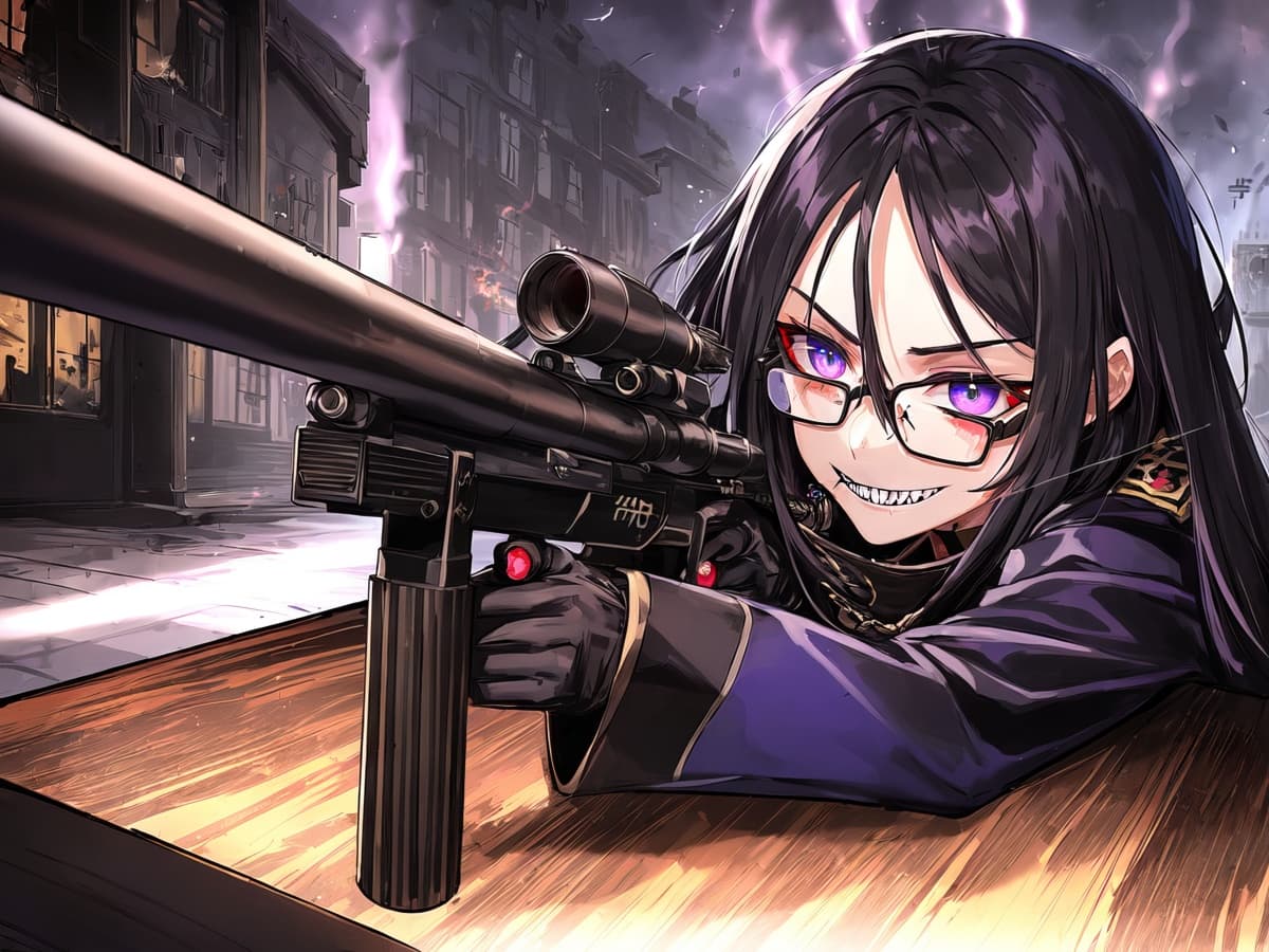 構図では「focus on handgun, point a handgun at viewer,」のプロンプトを用いて武器を中心にしており、武器コンテストのコンセプトがしっかり再現させていて痺れました!