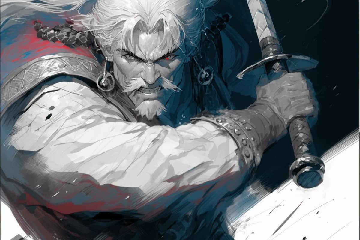 見た瞬間伝わってくる迫力、今にも突撃してきそうな躍動感に痺れました。 武器の全体は描かれていませんが、シンプルで重量感のある柄の描写と、 太く強調された腕が相まって、無骨ながら洗練された剣術の使い手だと感じさせます。 キャプションがなくとも世界観が伝わってくる素晴らしい作品だと思います。