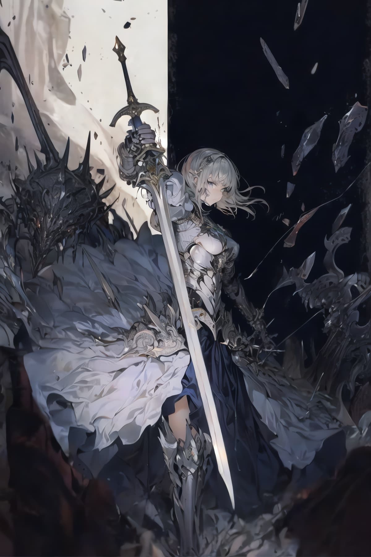 シンプルな構図ですが、武器を握る手や動作をしっかり表現できていて凄くいいです。刀系の武器は鍔が増えたり柄がなくなったり表現が難しいのですが、この作品はしっかり表現できていて驚きました。