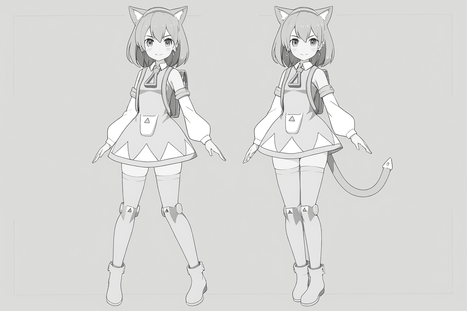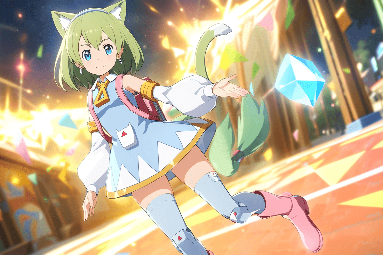 複雑な指定を行わずともデルタもんの特徴を呼びだす事ができるため、さまざまな画風や構図でイラストの生成が行えます。