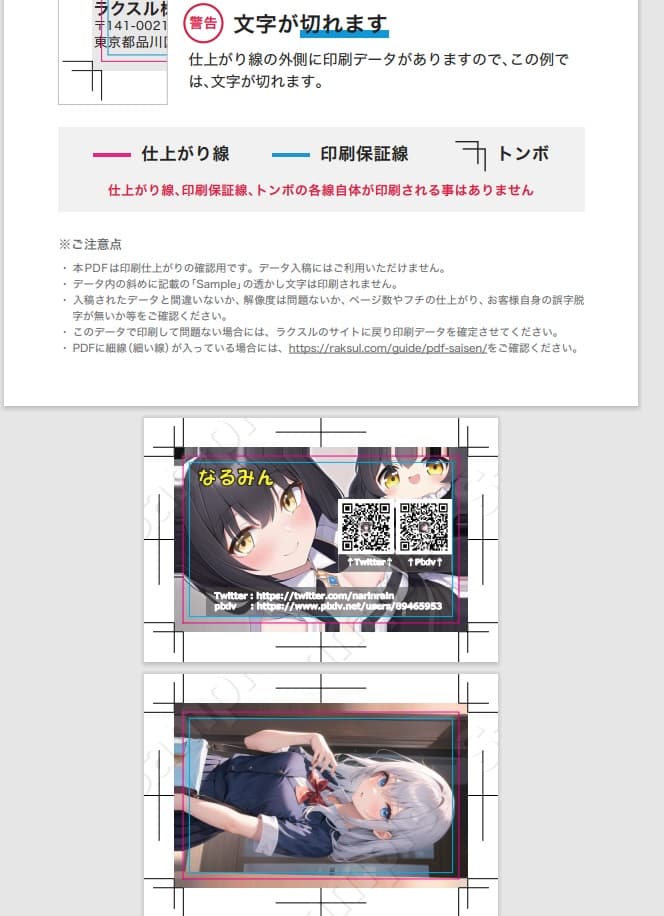 データ入稿後の確認用PDFでのセルフチェックは必ず行った方がいいです。
