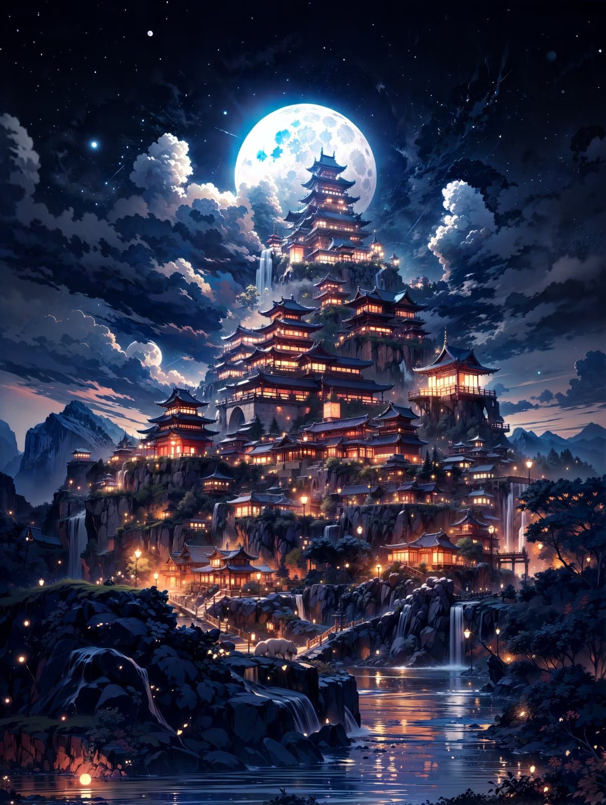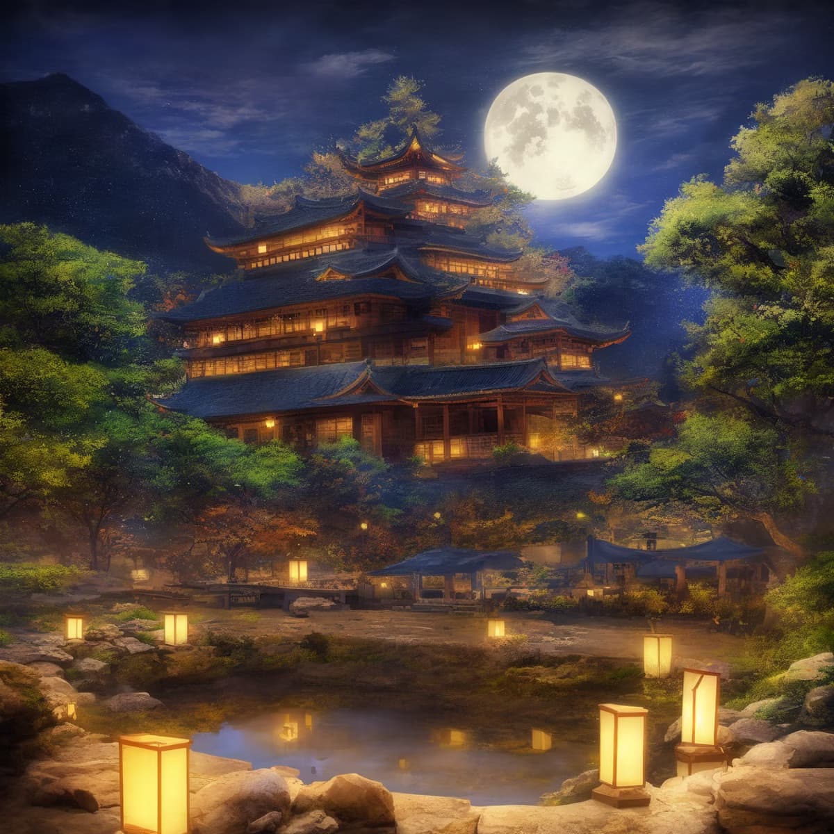 満月に照らされ、それぞれの藩主が住まう城にも明かりが灯る...