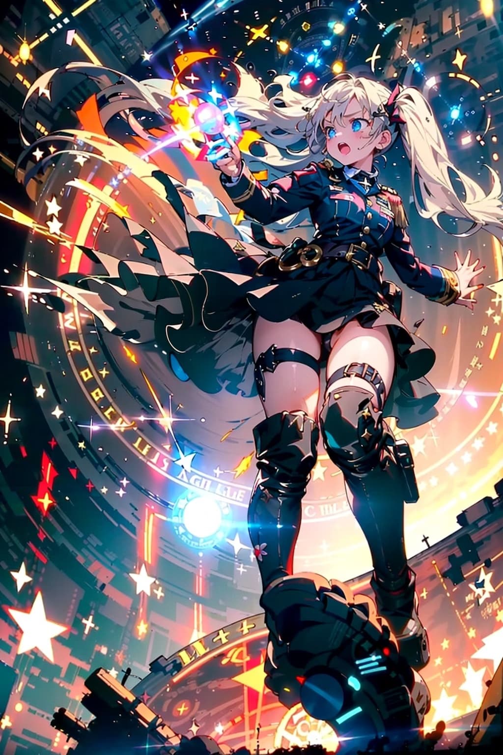 (((The magic light extends to the military satellite from the magic circle of the girl's eyes:1.5))), (((The last shooting is from the magic circle of the girl's eyes:1.5))), (((Pour all the magic power into the last shooting))),