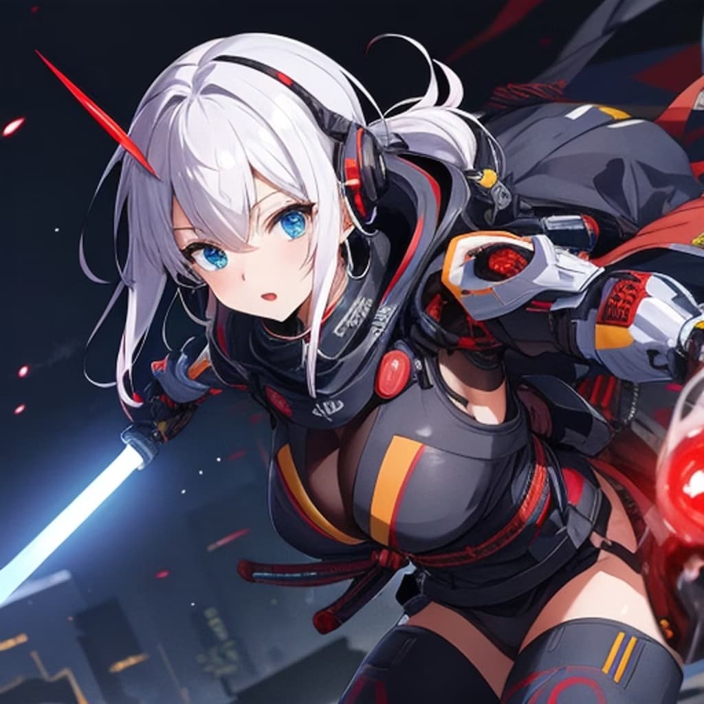 night, cyberpunk atmosphere, Japan, action scene, dynamic angle,