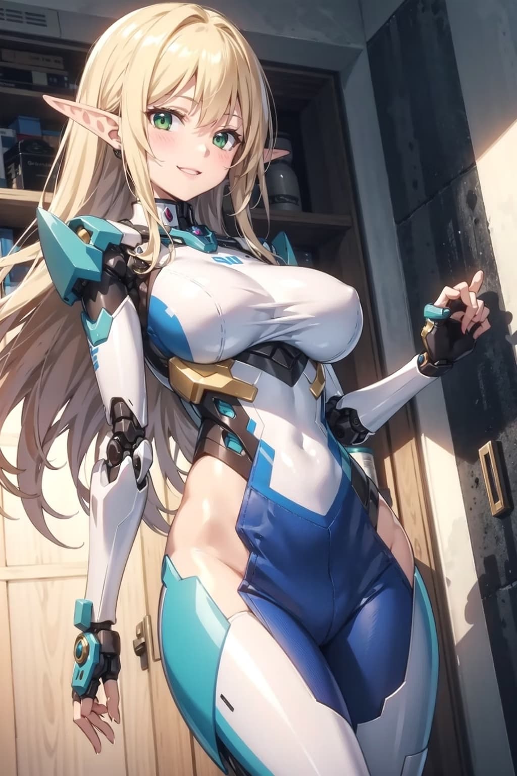 elf, masterpiece, best quality, hyper detailed, good anatomy, perfect anatomy, wedding ring on left ring finger, long hair, big breasts, expectant smile, pointy ears, blonde hair, green eyes, beautiful face, blush, beautiful eyes,24 years old, mature woman, perfect hands, perfect fingers,