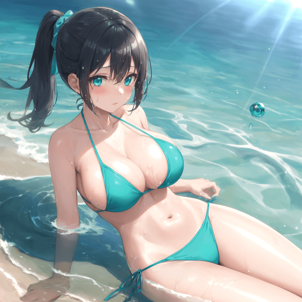 1girl bikini ocean fabrous feminie softy large breast