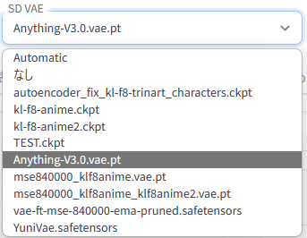 あんまり詳しく調べてないよっていう方は、恐らくAnything-V3.0.vaeとかvae-ft-mse-840000-ema-prunedとかを使用されているんでは無いでしょうか?