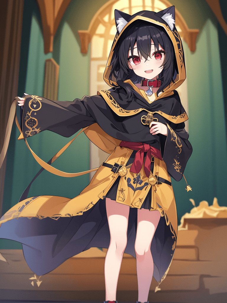 兎に角、フードを被ってくれるプロンプトです。猫耳と合わすと可愛いです!